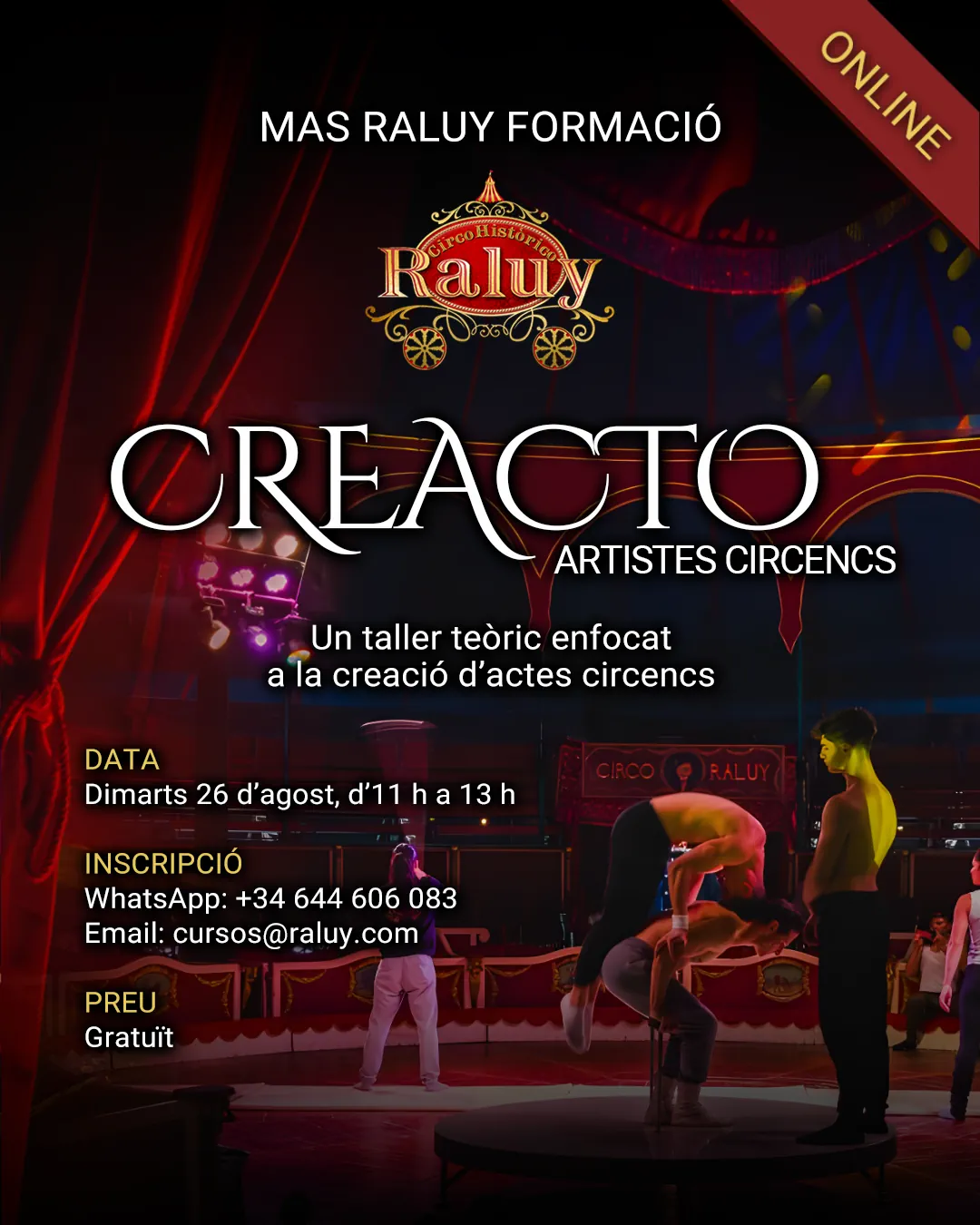 Este webinar gratuito es una introducción práctica al universo de CreActo, nuestro laboratorio intensivo de creación escénica para artistas circenses.